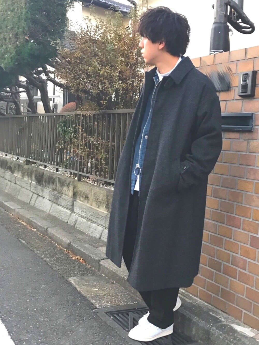 まぼんのステンカラーコート「BEAMS / イージールーズコート」を使ったコーディネート