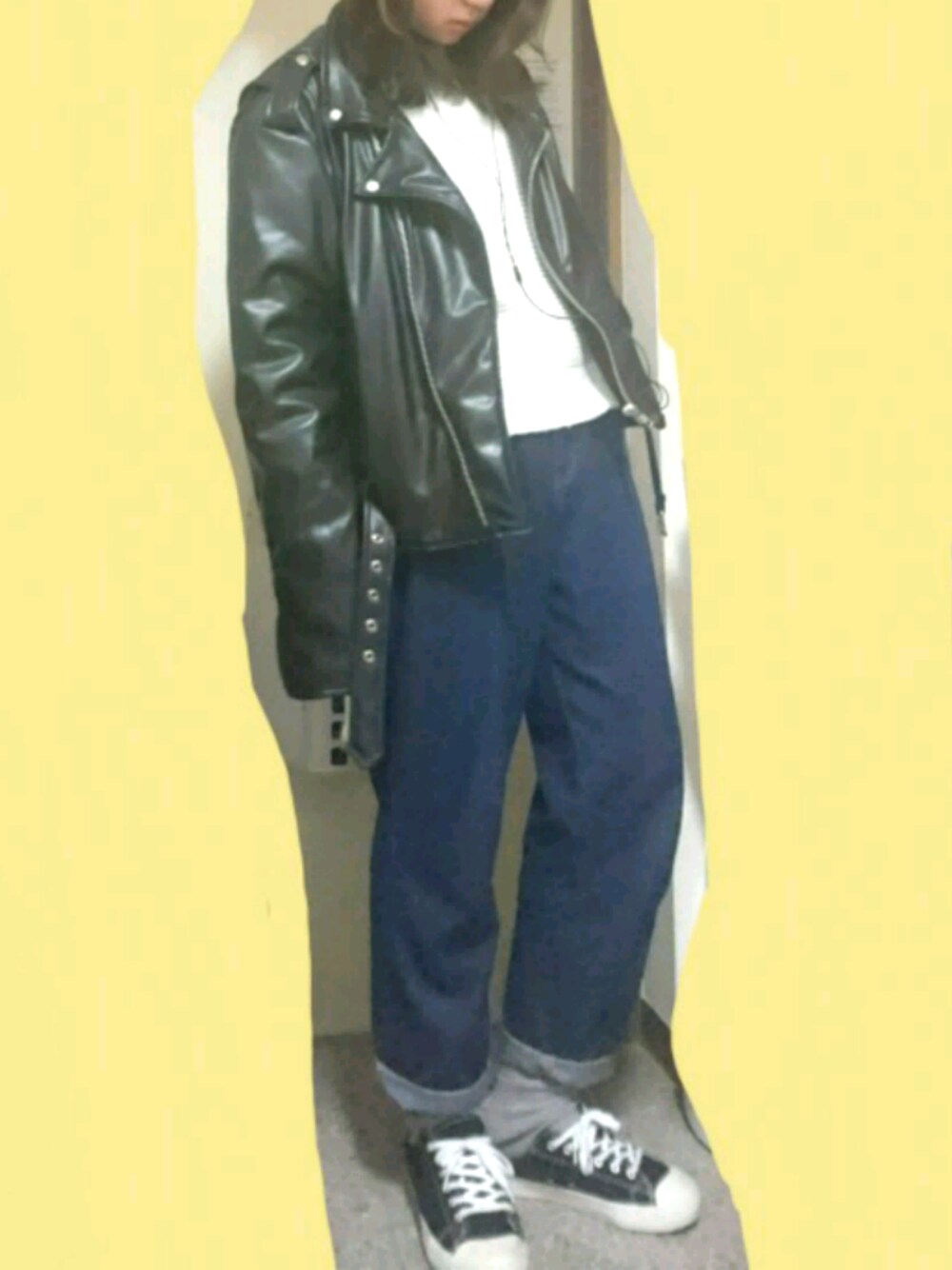このライダース、フェイクレザーなんだけど、本革のほうにすれば良かったと後悔。。