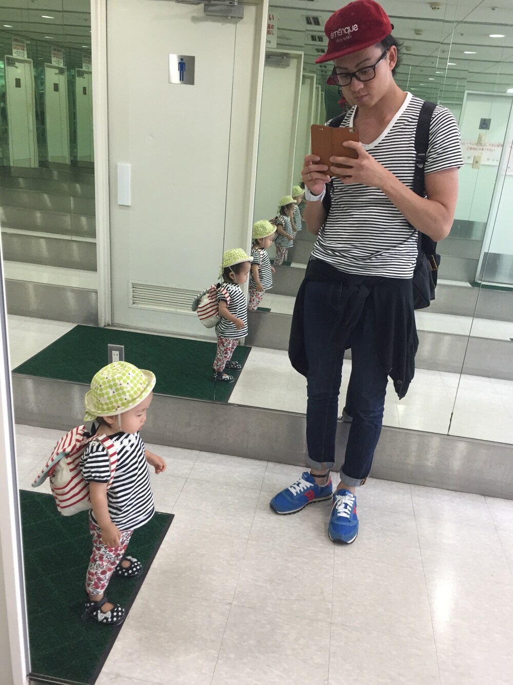 昨日買ったリュック大活躍です。 合わせ鏡ってあまり縁起よくないですよね。 すみません…。
