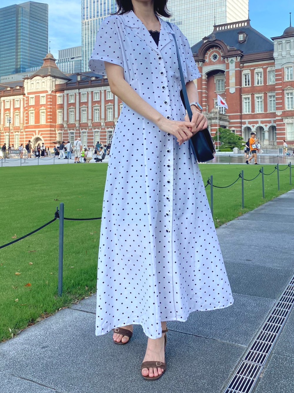 水玉ワンピース インナーに着ているユニクロのブラスリップ、 安心感凄いし着心地も機能性も最高◎