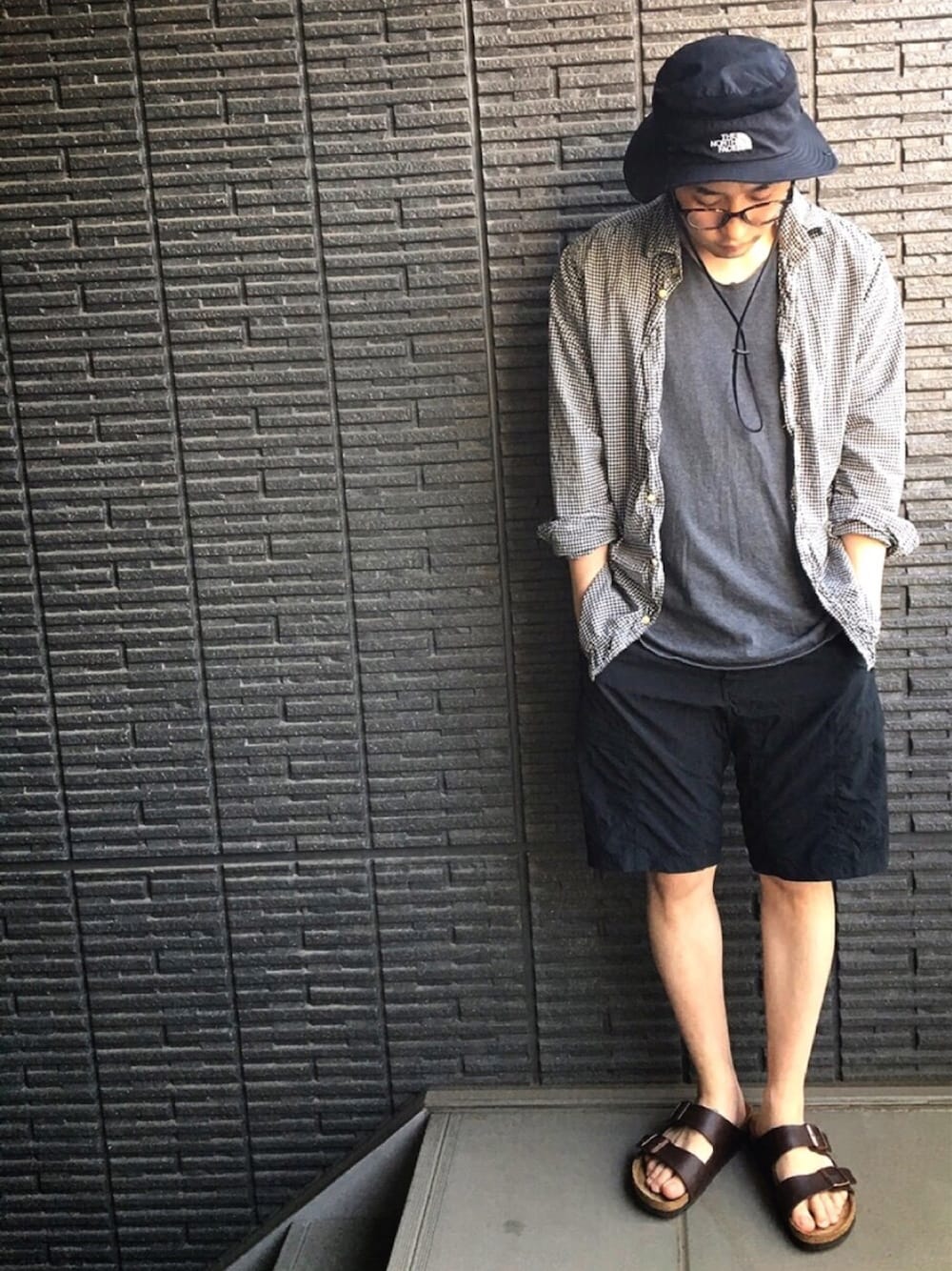 まっかんのハット「ザ・ノース・フェイス トレッキングハット / ブリマーハット」を使ったコーディネート