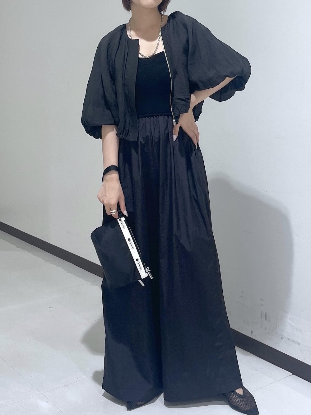 こんにちは! アダムエロペ ルミネ大宮店の松村です。 いつもご覧頂きありがとうございます♫ 今回はリネンやメッシュで軽さを出した、オールブラックのスタイリングです。 リネンで程よい透け感が軽やかなこちらのブラウス。 袖のボリュームが、、と気になられる方もいるかと思いますが、ショート丈なので逆にすっきり見えます◎ また、ボリューム袖は腕を細く見せてくれるのでおすすめです♫ デニムなどカジュアルなものと合わせても可愛いです(*^^*) 是非参考までに!
