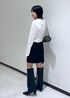 こんにちは! アダムエロペ ルミネ大宮店の松村です。 いつもご覧頂きありがとうございます❁⃘*.゚ 普段足を出さない私ですが、今回は挑戦です、、笑 ガニーのスカートが可愛いさを生かすスタイリングを組みたく、チャレンジしてみました!! チャイナ味を感じる模様とリボンで、パンツとレイヤードでも使えますし単体でブーツや厚底のシューズと合わせても今っぽくてオシャレに決まる一枚です♡ シンプルなロンT(肩パットが入ってるのでキレイめ要素もプラス)と合わせてます。 是非参考までに♫