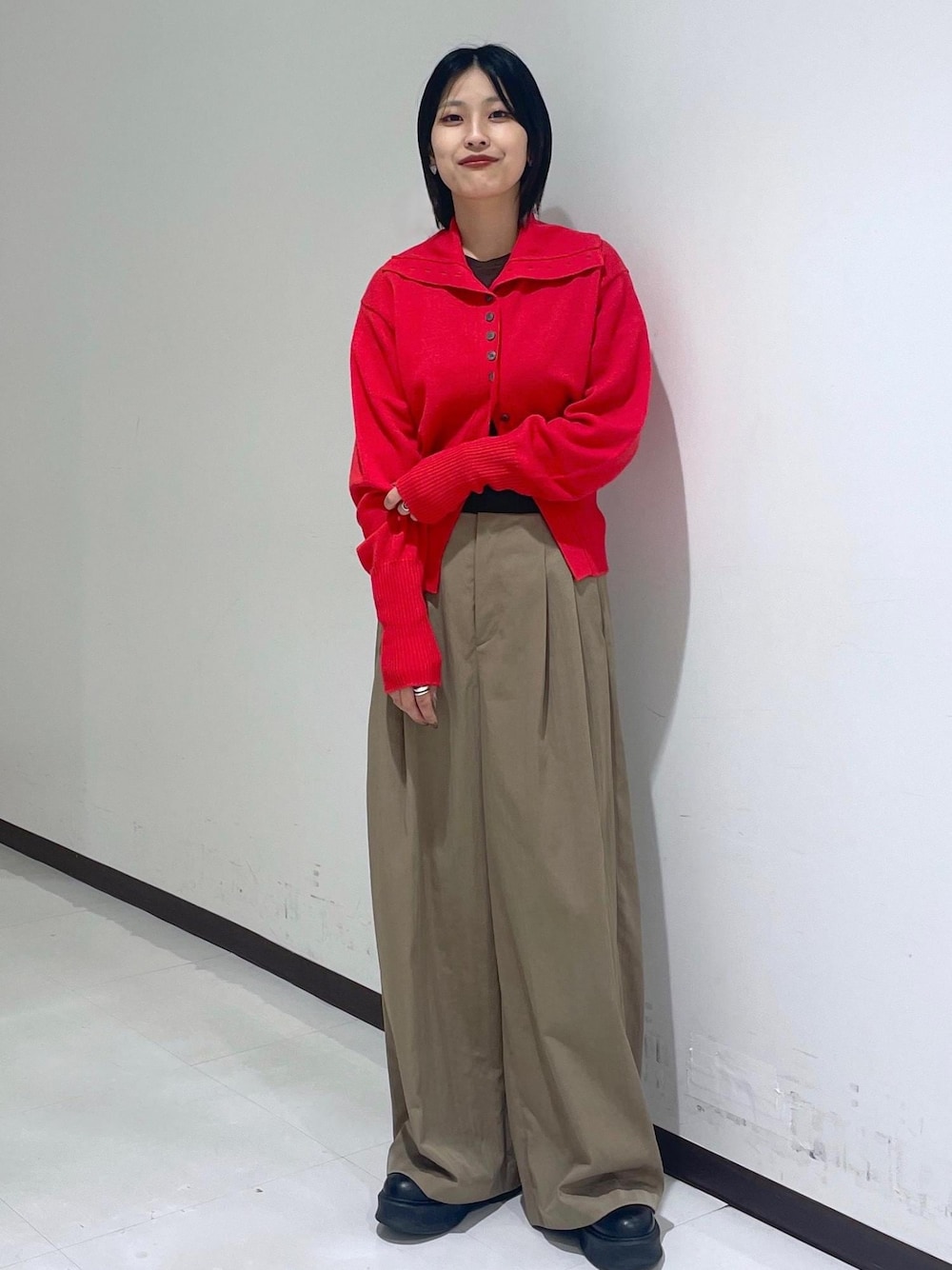 こんにちは。 アダムエロペ ルミネ大宮店の松村です! 今回は赤がメインのスタイリングです♫ 普段私はパキッとした色物は着ないのですが、、、 赤×ベージュ、赤×グレーなどなど、、、合わせるとやっぱり可愛いな、、!と気づきます笑 こちらの商品はそこまで生地は厚くないのですが、ウール100なのでとても温かく保温性も◎ ボタンが沢山あるのでとめる位置で雰囲気もかわりますよ! 派手な色物合わせ難しいな…という方は、黒でも勿論合うのですが柔らかいお色味のボトムスで合わせてみるのもおすすめです(*^^*)