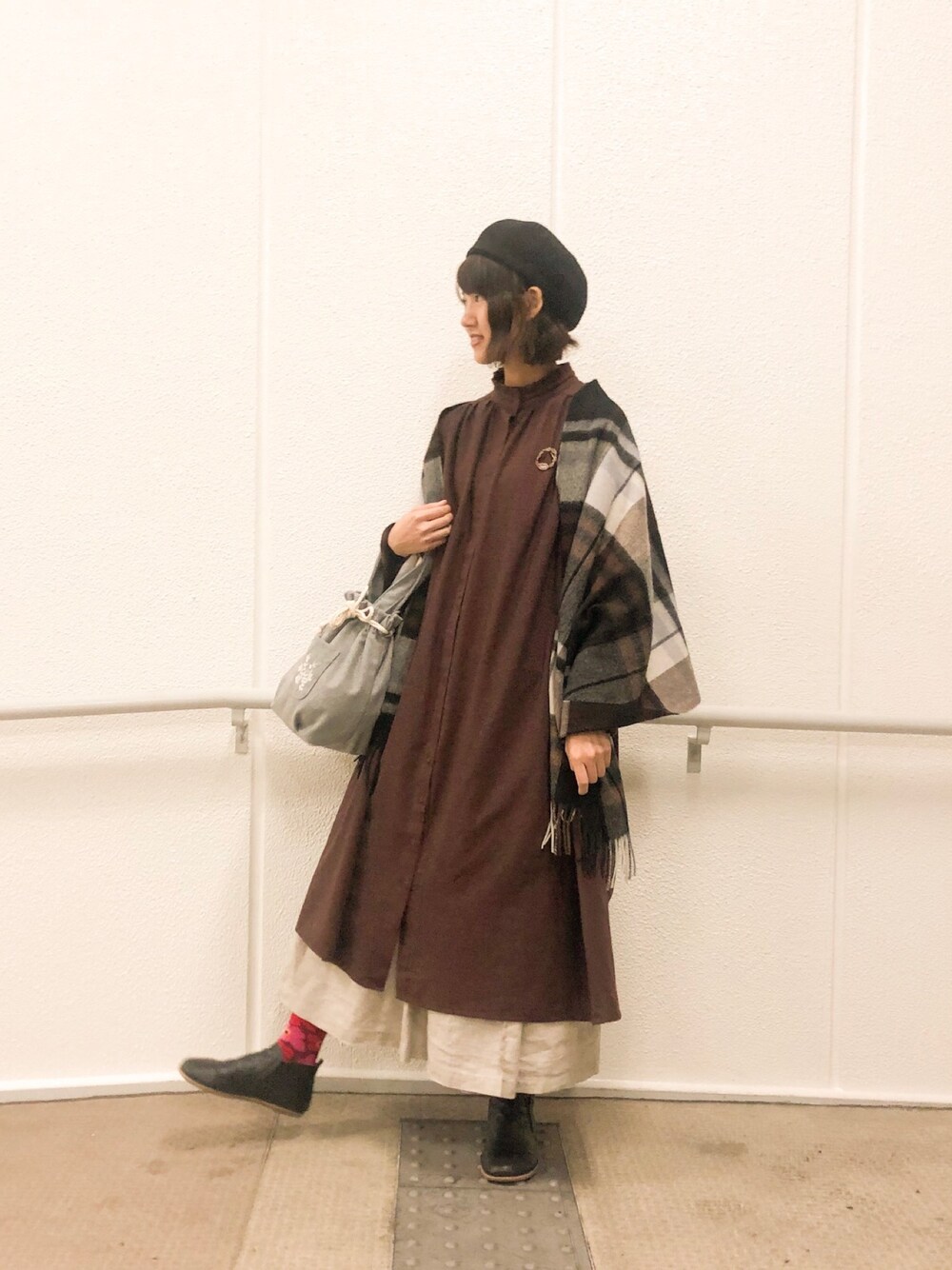 まっちゃんのワンピース「リカバーウールクラシックワンピース」を使ったコーディネート