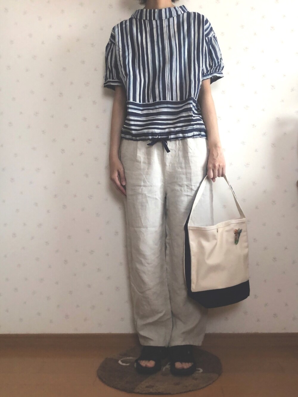 おはようございます☀ どちらも過去のものになりますが、 夏らしいコーディネート🌴 パンツは麻素材で涼しげです!ワンピースの下に履いたり重宝しています★