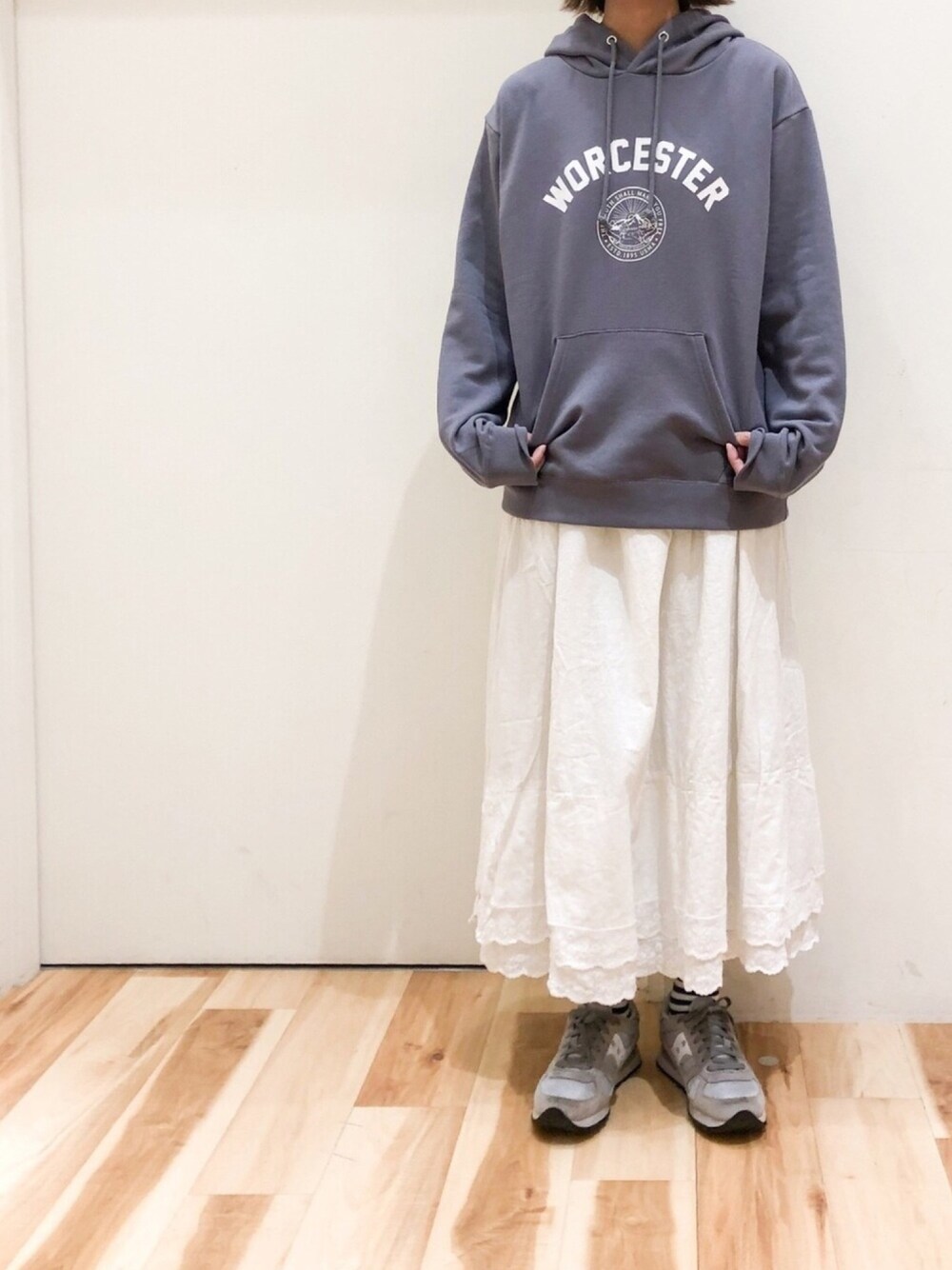 ガーリーなレースのスカートを カジュアルに合わせてみました🐻❄️ トレーナーはゆるっとした形が可愛いです☺︎