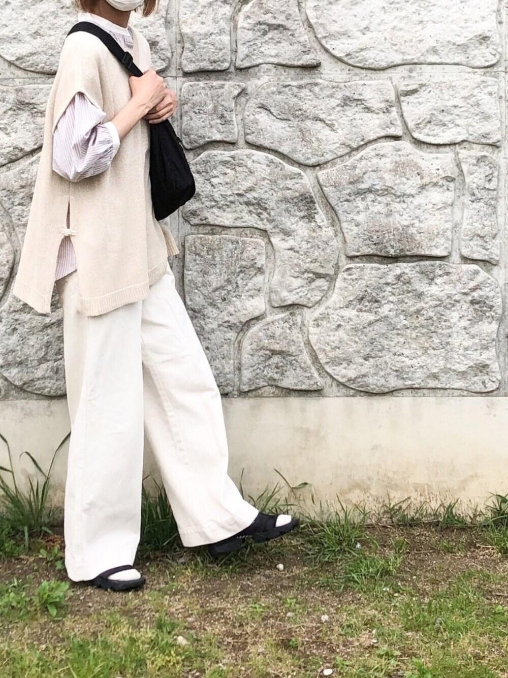 まっちゃんのベスト「前後着脇チャイナ釦ニットベスト」を使ったコーディネート