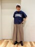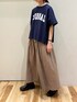 ゆるロゴTは長すぎない丈感で ボリュームボトムスとバランスが◎ ギャザーハカマパンツ好きすぎて またまた着用です😋
