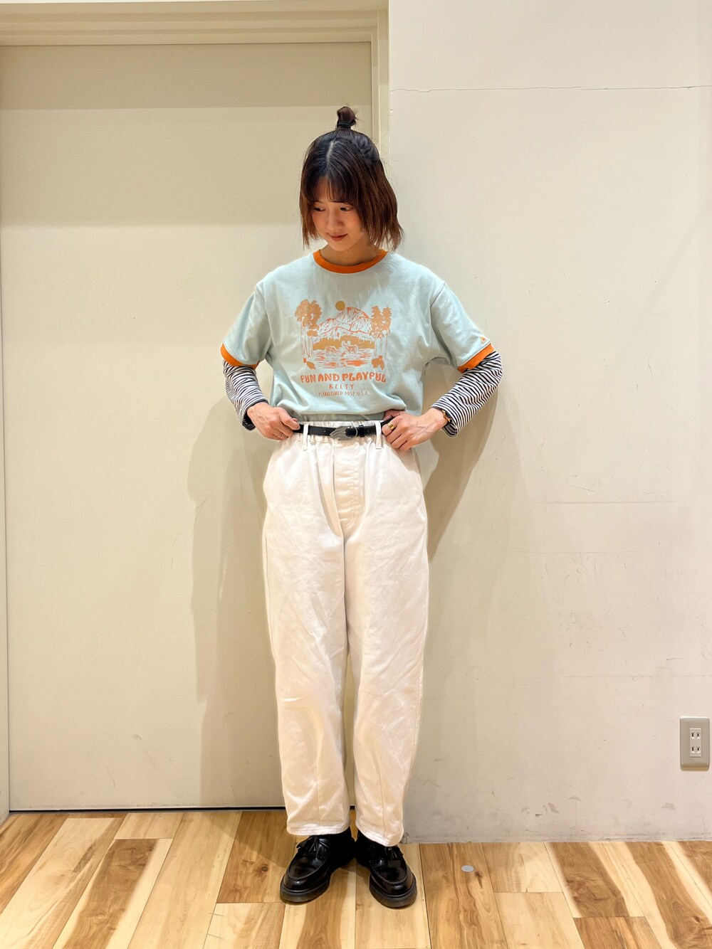 出勤コーデです🌞 ケルティコラボのTシャツは 野生のシカがプリントされてます🦌🦌🦌 動物好きの方におすすめです! 生地感もしっかりしててこれから 大活躍の予感です🏕