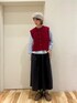ウール混の編み地が個性的なニットベスト🧶 カーディガンバージョンもあります◎ ブルーのストライプシャツと合わせました♪