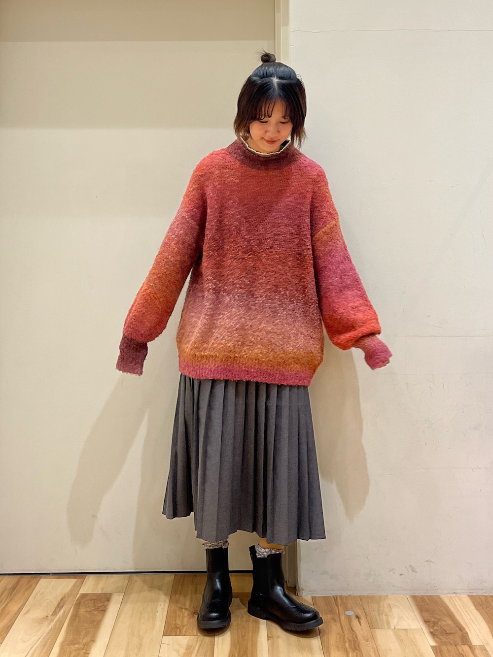 まっちゃんのニット/セーター「段染めブークレハイネックプルオーバー」を使ったコーディネート