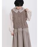 ナチュラルコーデ🧺 花柄編みニットベストは透かし模様なので 見た目も実際も重たくなりすぎず着ていただけます◎ 後ろボタンのデザインと 後ろもしっかり花柄編みなので バックスタイルも可愛いです🌼