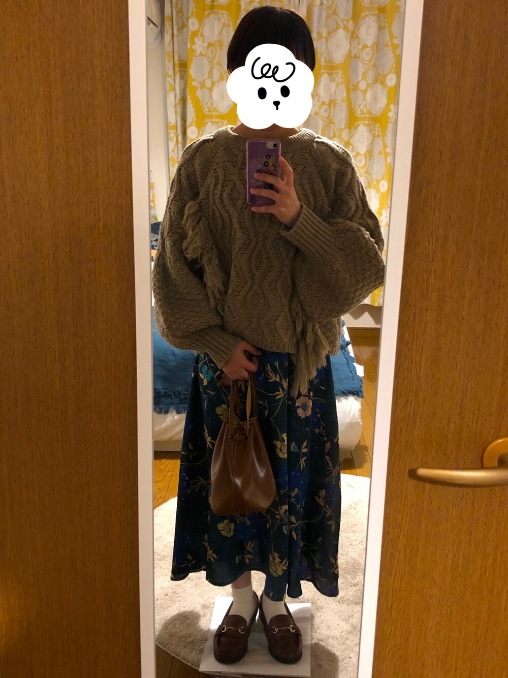 お気に入りニットに最近ゲットした巾着バッグを合わせて。 今年はニット集めたい〜