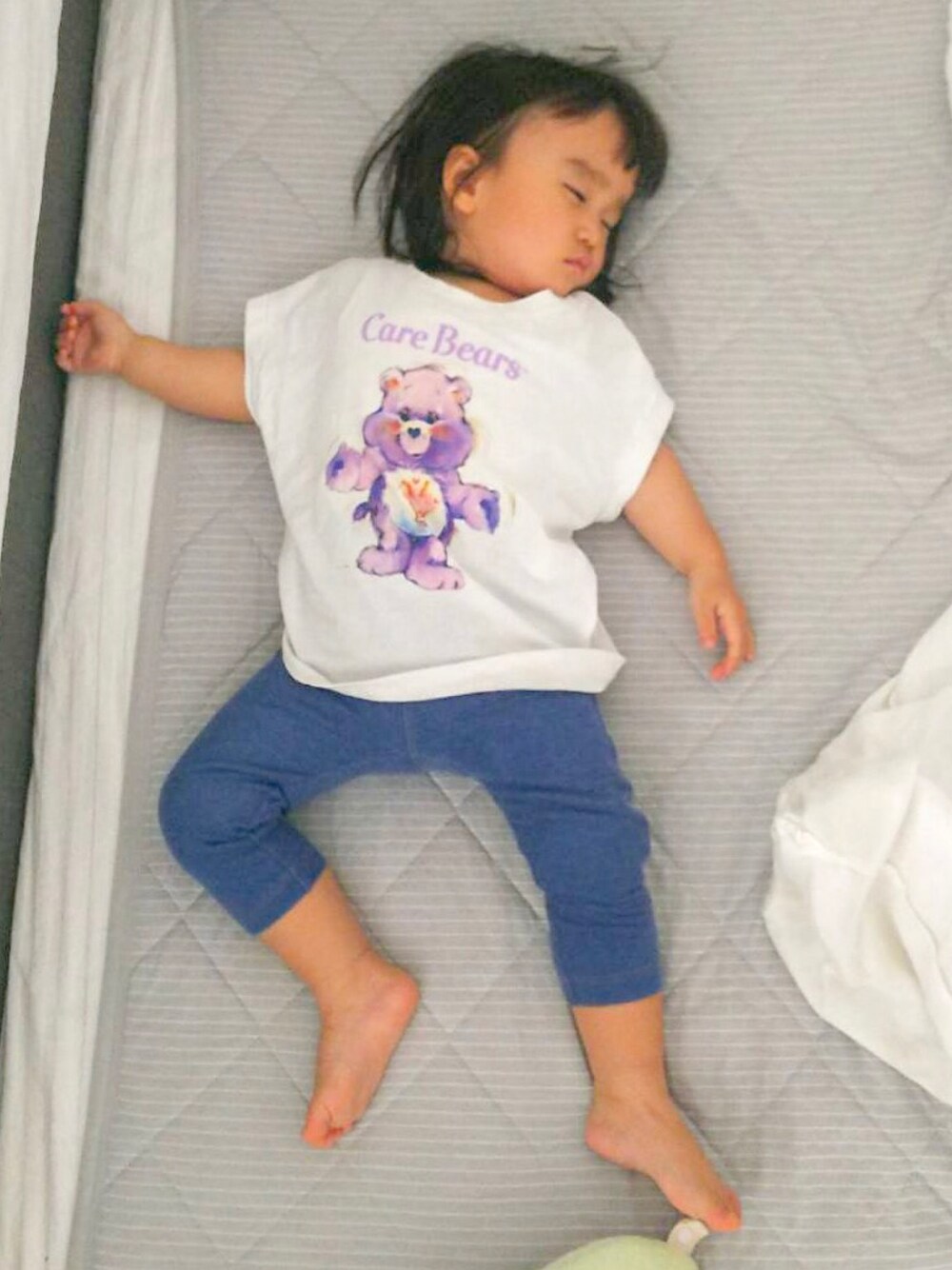 2018.6.19 ♡1歳10ヶ月 とある日のお昼寝☺️ ケアベアちゃんは くまちゃん♡とお気に入り♡ gu110サイズ😊