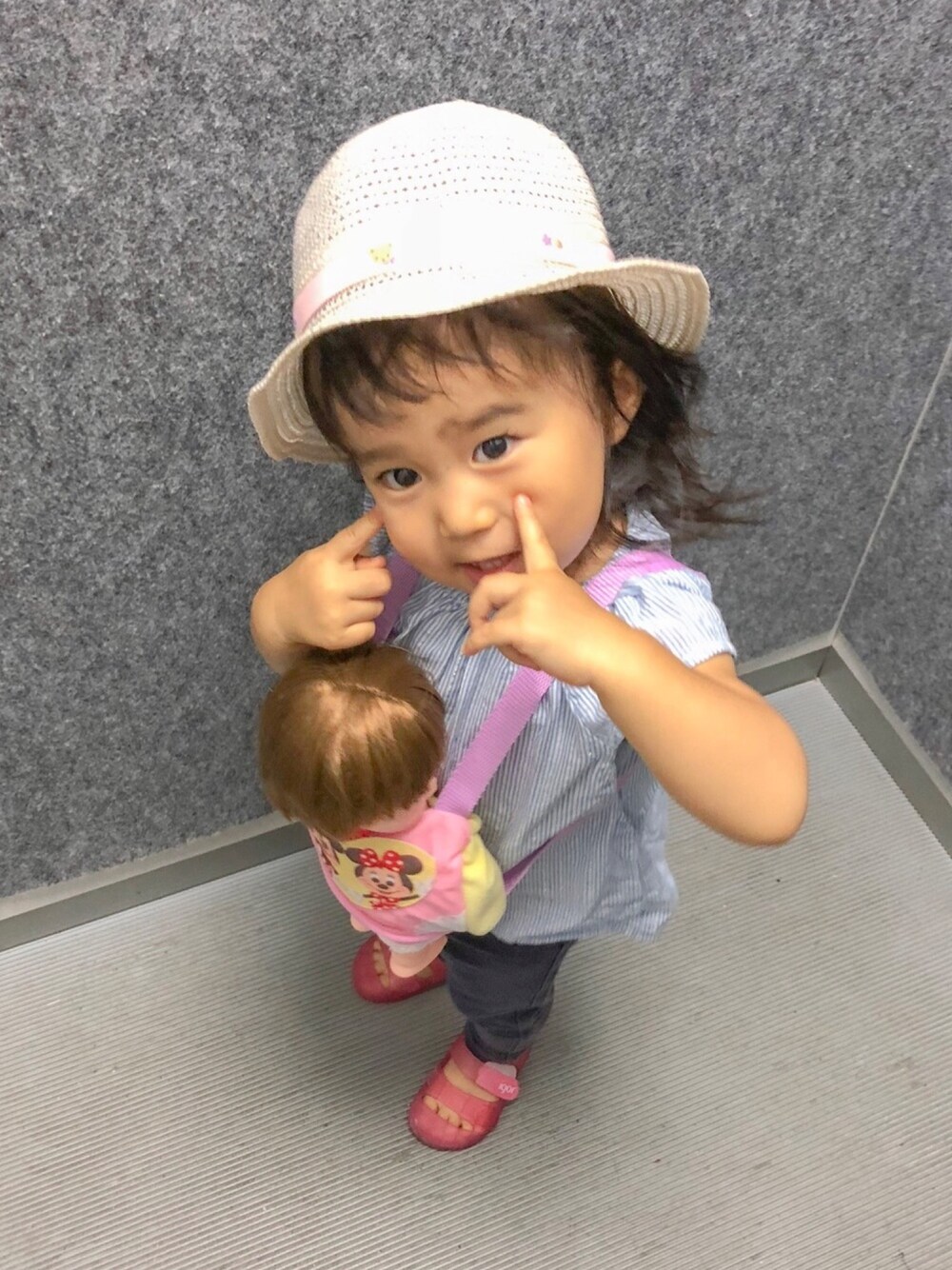 2018.7.14 ♡1歳11ヶ月 ばーばからの誕生日プレゼントで レミンちゃん👶🏻💕 だっこしゅる!! と、連れまわされてます。
