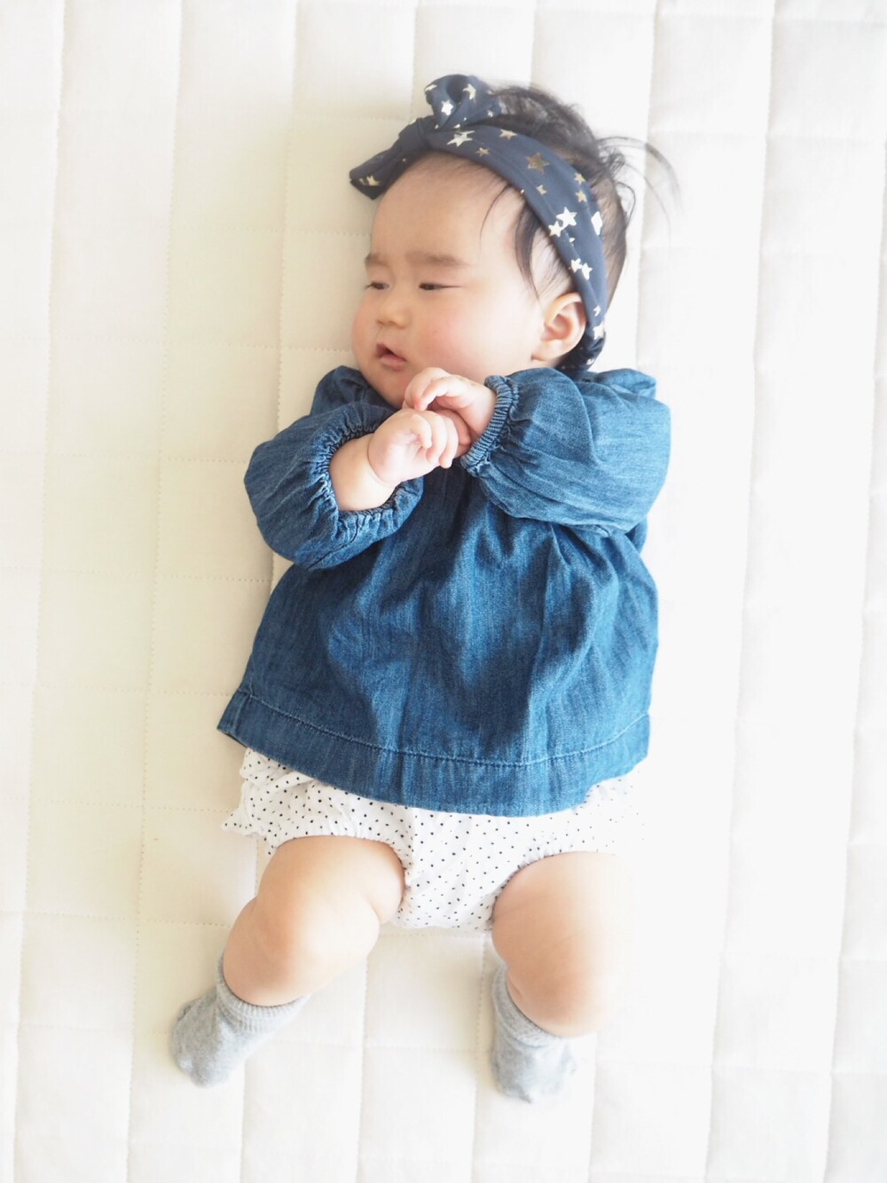 7ヶ月記念フォト❤︎ 離乳食も2回食へ🍴❤︎ なぞに椅子もガタガタ揺らすレベルのハイテンションで食べる。笑 春服ほしいなー。🌸