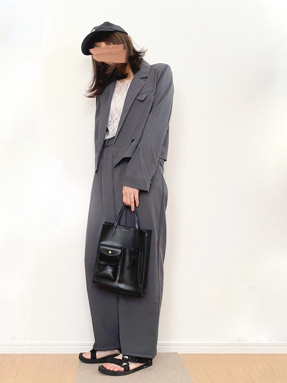 ECRIREさんのセットアップ パンツだけでも ジャケットだけでも 活躍しそう𐩕 トップスには レースを合わせてキレイめに キャップとスポーツサンダルで はずしてみましたᐝ 小物のカラーは黒にまとめて 統一感を𓂃 いいね・セーブ・コメント・フォロー 本当にありがとうございます* ❁ Instagram...@machacha2 ❁ Twitter...@machacha2_t