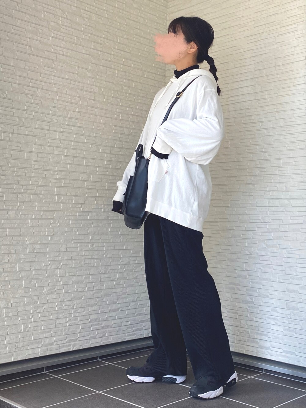 パーカーに リブタートルネック合わせるだけで お洒落に見える𓂃 ホワイト×ブラックコーデ いいね・セーブ・コメント・フォロー 本当にありがとうございます* ❁ Instagram...@machacha2