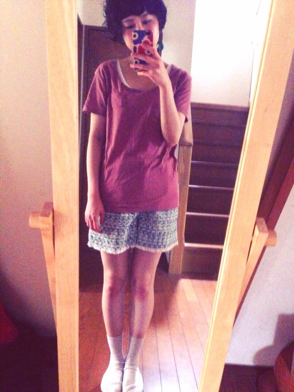 トップス:KBF パンツ:ivory court 靴下:ブランド不明 トップスは胸にポケットがついてます。 久しぶりに脚をだしました。