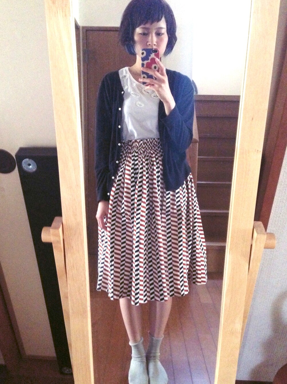 おひさしぶりです! なんかバタバタしてて、なかなか更新できませんでした(´・_・`) 更新してない間に髪の毛を切りました! やっぱり短い前髪。 そして初めての青紫のポイントカラーを入れました!(画像でわかるかなー?) やっぱり服装とか髪型が気に入ると気分があがる〜!その逆も然りです。 このスカートは母が作ってくれました。 多分1000円もかかってない。笑