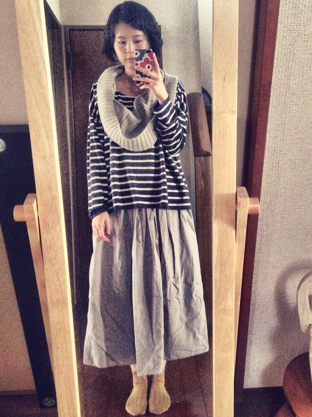 スヌード解禁! マフラーよりなぜかスヌードが好きです。 イヤホンとよくからまります。 今ぐらいの気候がずっと続いてほしいなー