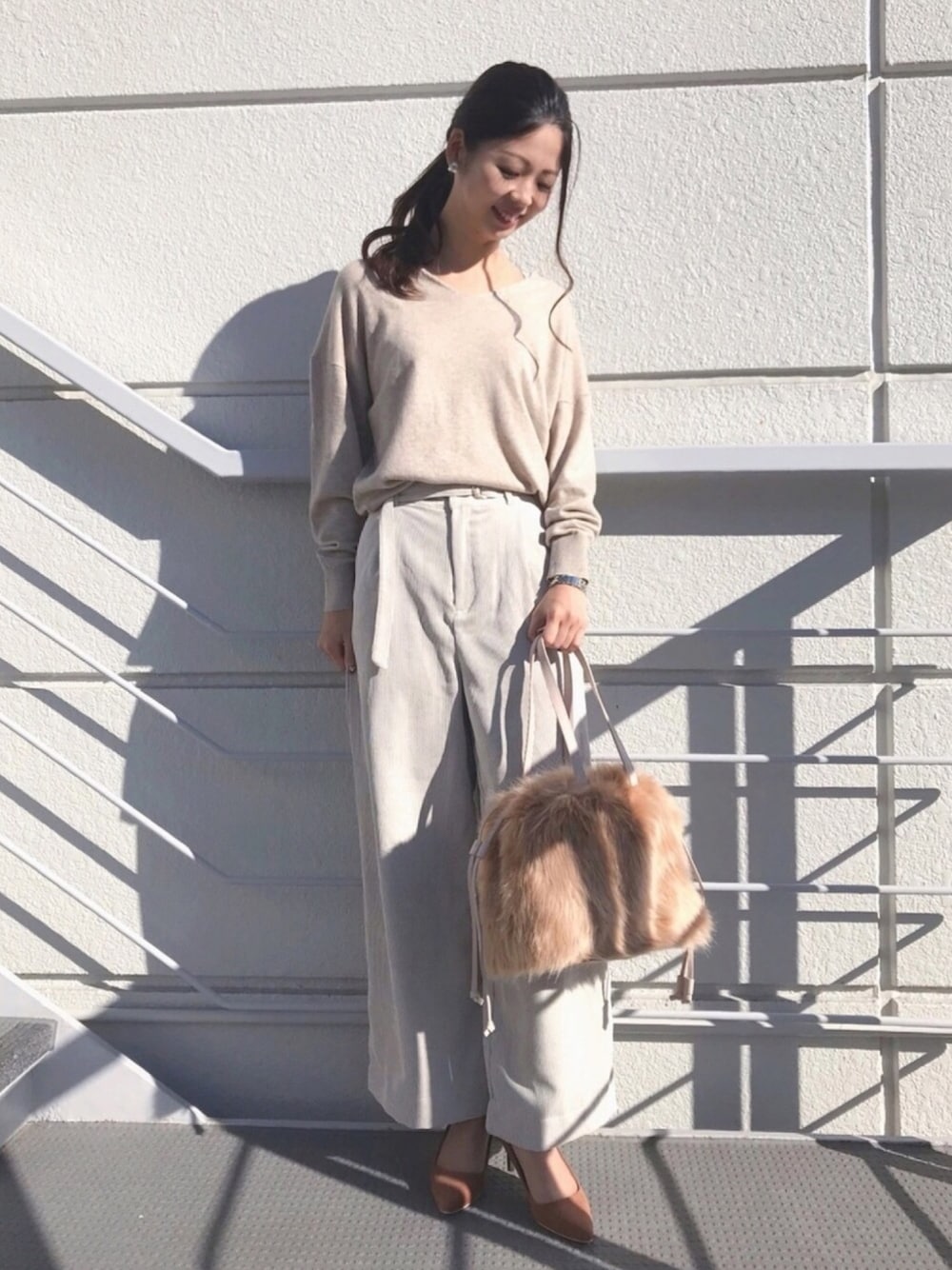 アイボリーのワントーンコーデ☺️ コーデュロイパンツは柔らかくて履きやすいです♫