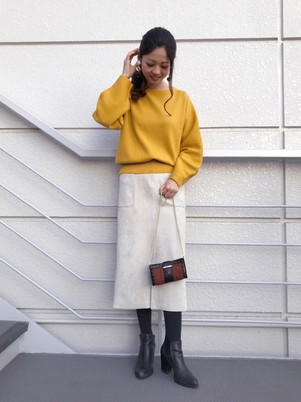全色欲しいニット♫ フェイクスエードスカートは前回より丈やウエストを改良してより綺麗なシルエットに☺️✨