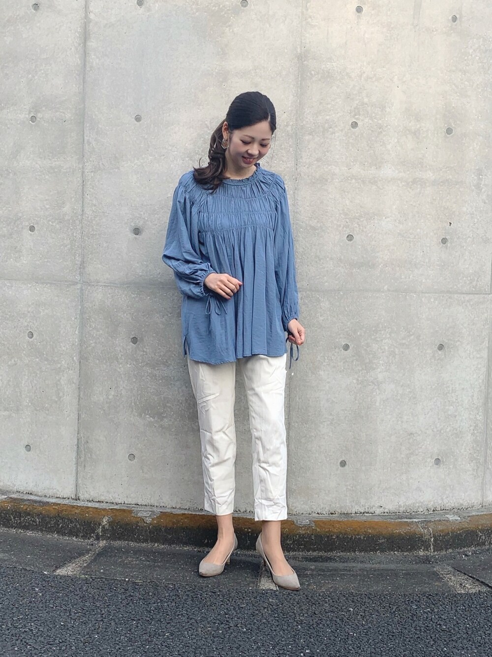 袖のボリューム感と胸元のシャーリングがポイントのブラウス🌼