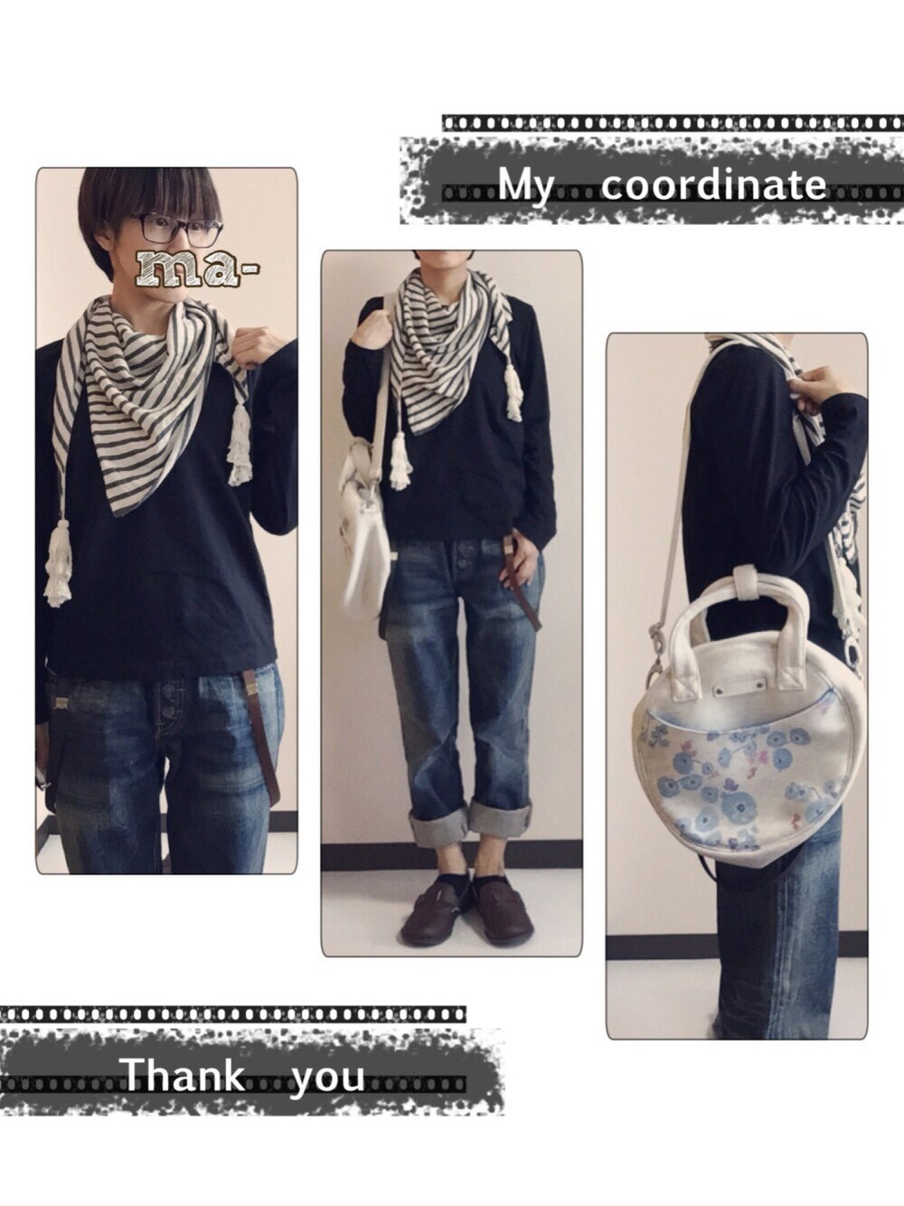 まーのストール/ショール「ボーダーストール」を使ったコーディネート
