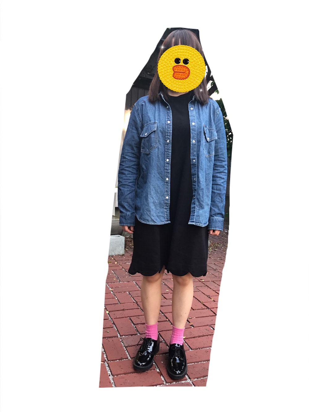 メリージェニーのワンピースにデニムシャツ合わせました👚 足元にピンクを入れて女の子っぽさも忘れずに笑 今日、授業中に蜂から刺されそうになり怖くてトラウマになりかけたコーデです笑😆全身黒は夏やめた方がいいなと思った1日でした!