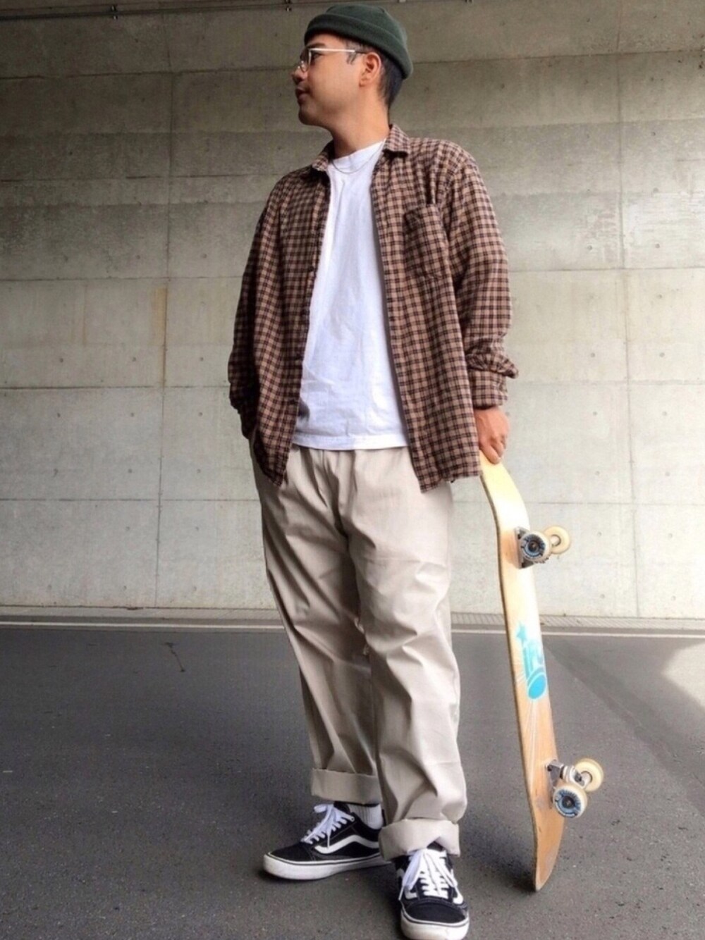 いつも、いいねとお気に入りありがとうございます😊 写真はスケボーした時に撮ったものです🛹 シャツはUNIQLOで買ったやつで、 色はブラウン×ネイビー、サイズはXLです👔 パンツはGUのシェフパンツなんですが、 めちゃくちゃ動きやすくて最高です😆 サイズはXLです🩳