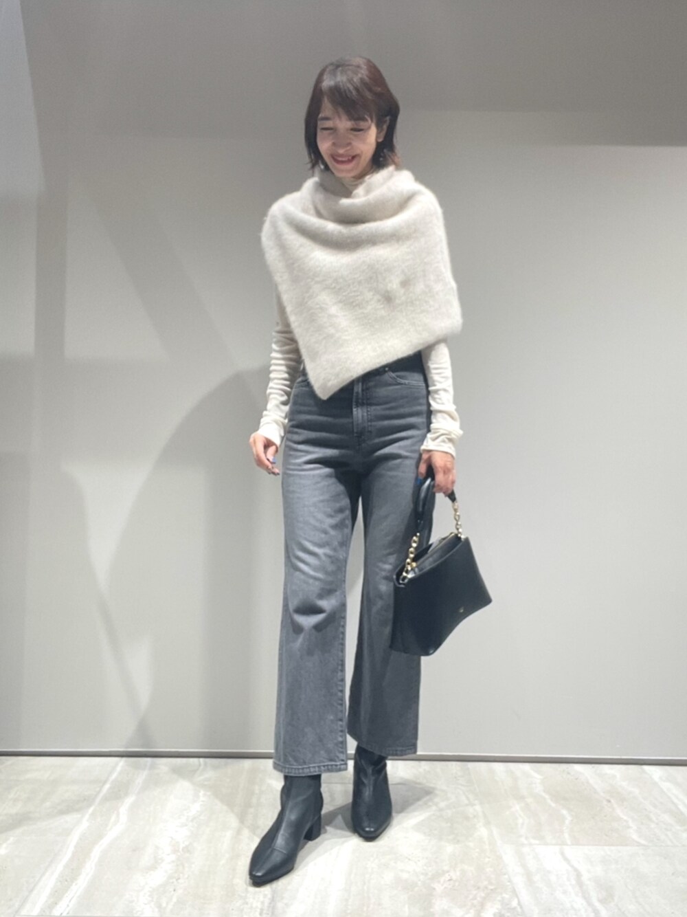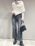 【スヌード: フォックスカシミアスヌード】 着用サイズ:Free ▼サイズ感 程よいゆとりで、 サイドスリットがあり、被りのデザインなので、 着脱も楽です◎ ▼着心地・生地感 フォックスカシミアの上質で柔らかな質感と チクチク感が気にならないふわふわとした優しい肌あたり。 軽やかでとても暖かな着心地です♪ ▼コメント 軽やかで暖かく、カーディガン代わりにも、 冬はアウターの上にマフラー代わりにも◎ 秋〜冬まで活躍する優秀スヌード。 シンプルコーデにプラスするだけでおしゃれ感がUPするおすすめアイテムです! 【トップス: シアーテレコプルオーバー】 着用サイズ:Free ▼サイズ感 程よいフィット感。 伸縮性があるので、締め付け感なく着られます。 着丈はヒップラインにかかるくらい、袖丈も長め。 ▼着心地・生地感 程よいシアー感と軽やかな素材でとても着やすいです。 ▼コメント ベストやニットのインナーとしても◎ 適度な透け感と軽やかな着心地で ワードローブに1枚あると大活躍なアイテムです。 【ボトムス: 〈e×qualite〉フレアークロップドデニム】 着用サイズ:36 ▼サイズ感 太ももラインはややタイトで、 裾にかけて程よいフレアとクロップド丈。 腰まわりはすっきり、膝下が長く見える美脚シルエットです♪ ▼着心地・生地感 コットン100% クロップド丈で、 サンダルやショートブーツも合わせやすい丈感なので、季節問わず着られます。 ▼コメント 美脚ラインですっきりシルエットが引き立つデニム。 夏はサンダル、 肌寒い時期はショートブーツを合わせてと、 オールシーズン着回しができるデニムです‼︎