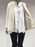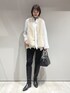 【ジレ: ミンクライクファージレ】 着用サイズ:Free ︎ ▼サイズ感 ゆとりのあるシルエット。 ピップラインが隠れる着丈です。 ウエスト内側のドローストリングで、 くびれシルエットにもアレンジ可能です。 ▼着心地・生地感 フェイクファーですが、リアルミンクのような光沢感と滑らかな手触りで高見えするジレ。 着心地良いです。 ▼コメント 存在感はありつつ、Vネックデザインと 内側のドローリングでシルエットも変えられるので ボリュームが出すぎずに着られて、 コーデのバランスがとりやすいです。 シンプルアイテムにプラスするだけで、 リッチ感が◎秋冬気分がぐっと高まる おすすめアイテムです🍂 【ブラウス:ランダムヘムシャツ】 着用サイズ:Free ▼サイズ感 程よくゆとりのあるシルエット。 裾の長いところは太腿やヒップラインに かかるくらいの着丈です。 ▼着心地・生地感 シワになりにくく、 程よいハリ感があり、ランダムの裾とフォルムが 決まるので、レイヤードスタイルに相性良いです◎ ▼コメント ランダムな裾のデザインが目を惹くシャツ。 動きがでるので、1枚着でも映えて ニットやジャケットに重ねて着たりと、 レイヤードスタイルにおすすめのデザインシャツです。 【トップス: ウールカシミアシアータートルニット】 着用サイズ:Free ▼サイズ感 程よいフィット感。 伸縮性があるので、締め付け感なく着られます。 着丈はヒップラインにかかるくらい、袖丈も長め。 ▼着心地・生地感 カシミア混の細番手糸を使用し、 柔らかく暖かい素材で、とても着心地良いです。 程よいシアー感と軽やかな素材感。 ▼コメント 単品はもちろん、 ジレやジャケットのインナーなどにも合わせやすく、ワードローブに1枚あると大活躍な万能アイテムです! 【ボトムス: トリコットスリムパンツ】 着用サイズ:36 ▼サイズ感 脚のラインを綺麗に見せてくれる細身シルエット。 裾のチャックでスリットの調整ができます。 ▼着心地・生地感 ストレッチが効いたトリコット素材。 伸縮性がとても高く、とにかく動きやすいです! ウエストが総ゴムなのもさらに快適な着心地◎ ▼コメント 脚のラインを拾いにくく、美脚見えが叶うボトムス。 細身シルエットながら、 ストレッチが効いていて、締め付け感がなく ストレスフリーな履き心地は、 オフィスにはもちろん、旅行にもおすすめの一本です‼︎