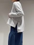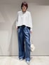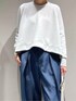 【トップス: ダンボールボックスプルオーバー】 着用サイズ:Free ︎ ▼サイズ感 全体的にゆとりのあるサイズ感。 前後差がある着丈で、後ろは腰下くらいの長さ。 前は短め丈なので、ワイドボトムスとの相性抜群です。 ▼着心地・生地感 表面がなめらかで、ほんのりツヤ感のあるダンボール素材を使用。 ストレッチが効いているので、楽な着心地。 ▼コメント ゆったりとしたサイズ感で楽な着心地ですが、 滑らかでツヤのある素材感が 大人な印象のスウェット。 カジュアルなボトムスはもちろん、 キレイめボトムスと合わせて、 オフィスカジュアルにもおすすめです! 【ボトムス: テンセルハイツイストワイドパンツ】 着用サイズ:38 ▼サイズ感 脚のラインを拾わないワイドシルエット。 ▼着心地・生地感 テンセル特有の滑らかさがあり、 微光沢と落ち感か綺麗な素材感。 軽やかで着やすいです。 ▼コメント テンセル特有の滑らかさ、微光沢で 綺麗な落ち感なので、 カジュアルにならずに上品な印象に。 きれいめに穿けるセンタープレスと ワイドシルエット、後ろウエストのゴム仕様が 洒落感とイージーな履き心地を両立してくれます。 春に活躍間違いなしのボトムスです。 同素材のシャツ(No.32520010004)と合わせたセットアップでの着こなしもおすすめです!
