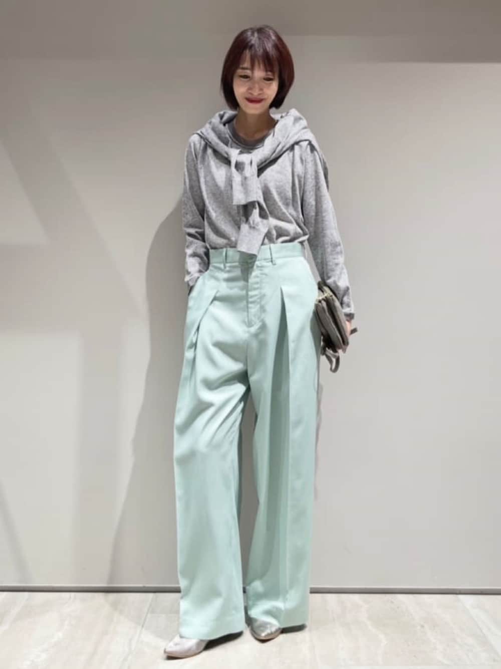 【トップス: シアーミックスニットプルオーバー】 着用サイズ:Free ▼サイズ感 程よく肌離れするサイズ感。 ヒップにかかるくらいの着丈で イン•アウトどちらもしやすいです。 ▼着心地・生地感 麻混素材の軽やかな生地感。 ミックスカラーと首周り、袖口にシアーの別素材がトリミングされているのもポイント。 ▼コメント きれいめなボトムスとも、 デニム合わせでカジュアルにも、 オンオフ問わず着回しやすいアイテムです。 【カーディガン: シアーミックスカーディガン】 着用サイズ:Free ▼サイズ感 着丈はコンパクトな短め丈なので、 ワイドパンツやワンピースにも相性が良いです。 ▼着心地・生地感 着用のプルオーバーと同素材。 ミックスカラーと袖口や襟ぐりから前立てまで続くラインにシアーの別素材がトリミングされていています。 ▼コメント 短めの着丈なので、ワイドパンツなど ボリューム感のあるボトムスと合わせると 脚長効果も◎ 軽やかなカーディガンは 春に向けて重宝するアイテムです。 【ボトムス: テンセルハイツイストワイドパンツ】 着用サイズ:38 ▼サイズ感 脚のラインを拾わないワイドシルエット。 ▼着心地・生地感 テンセル特有の滑らかさがあり、 微光沢と落ち感か綺麗な素材感。 軽やかで着やすいです。 ▼コメント テンセル特有の滑らかさ、微光沢で 綺麗な落ち感なので、 カジュアルにならずに上品な印象に。 きれいめに穿けるセンタープレスと ワイドシルエット、後ろウエストのゴム仕様が 洒落感とイージーな履き心地を両立してくれます。 春に活躍間違いなしのボトムスです。 同素材のシャツ(No.32520010004)と合わせたセットアップでの着こなしもおすすめです!
