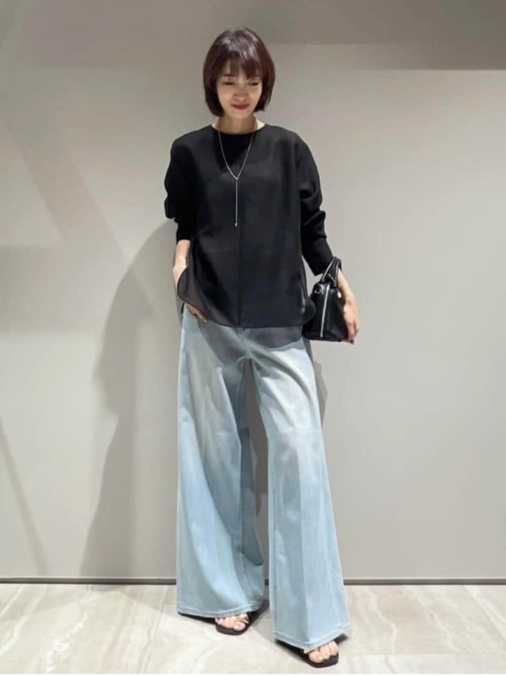 【トップス: シアーTブラウス】 着用サイズ:Free ▼サイズ感 シルエットが出ずに肌離れするサイズ感。 サイドスリットがあるので、 インアウトどちらもしやすいです。 ▼着心地・生地感 天然タッチの風合いでハリ感のある生地感。 程よいシアー感があり、 シワになりにくく軽やかな素材。 ▼コメント ジャケットのインナーとしても 1枚着としても着られる万能ブラウスです。 【ボトムス: 〈Healthy denim〉"Wild Ginger"】 着用サイズ:36 ︎ ▼サイズ感 ウエストと腰回りにリラックス感があり、 脚のラインを拾わずに穿けるバギーデニム。 股上が深いハイライズで、股下が長めです。 ▼着心地・生地感 リヨセルが入っていて柔らかく、 ストレッチ効いているので、 ストレスフリーな穿き心地です。 ▼コメント 硬さやハリがない柔らかな素材で 動きやすくとても着心地が良いデニム。 センタープレス加工が施されているので、 縦ラインが綺麗に見え、 コンパクトトップスを合わせると脚長効果も◎ 一年通して着回しできるデザインなので、 持っていると重宝します。