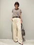 【トップス: レーヨンストレッチフレンチ】 着用サイズ:Free ▼サイズ感 身幅は程よいゆとり。 前後差があり、後ろはヒップラインが隠れる着丈で 安心感抜群です。 裾にサイドスリットがあり、インもしやすいデザイン。 ▼着心地・生地感 レーヨンとナイロン素材が滑らかで優しい肌あたり。ストレッチが効いていて着心地良いです。 接触冷感素材で、真夏も快適に着られます。 ▼コメント 1枚着としても、ジャケットのインナーとしても 重宝するシンプルニット。 ストレッチが効いていて快適な着心地と、 上質な滑らかな生地感が きれいめからカジュアルまで着回ししやすい万能アイテムです。 【ボトムス: テンセルハイツイストワイドパンツ】 着用サイズ:38 ▼サイズ感 脚のラインを拾わないワイドシルエット。 ▼着心地・生地感 テンセル特有の滑らかさがあり、 微光沢と落ち感か綺麗な素材感。 軽やかで着やすいです。 ▼コメント テンセル特有の滑らかさ、微光沢で 綺麗な落ち感なので、 カジュアルにならずに上品な印象に。 きれいめに穿けるセンタープレスと ワイドシルエット、後ろウエストのゴム仕様が 洒落感とイージーな履き心地を両立してくれます。 春に活躍間違いなしのボトムスです。 同素材のシャツ(No.32520010004)と合わせたセットアップでの着こなしもおすすめです!