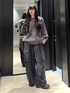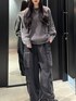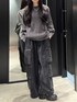 162cm/骨格ナチュラル ▶︎トップス 加工感がお洒落なミドル丈ニット 綿100%で着心地⚪︎ 前後2wayで着用できます! ▶︎パンツ メンズのSサイズ着用 ビンテージ加工が今年らしい ワイドシルエットのデザインスウェット。 ウエストゴムで、紐付きです!