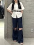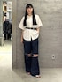 ▶︎シャツ エリビジューデザインがポイント シワになりにくく、扱いやすい素材 インナー使いにも 羽織使いにもおすすめです~♡ ▶︎パンツ レディースにもおすすめ メンズアイテムです!! 長さの調整はベルト+ヒールで🙆♀️ 綺麗目な素材感で色々なコーデに合わせやすい!
