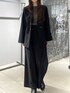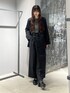 ▶︎ジャケット シルバー金具がアクセント✨ ノーカラージャケットで大人っぽく スタイリッシュなデザインです。 肩パッド入りでモードな着こなしに😌 ▶︎パンツ ラップデザインのワイドパンツ 腰のシルバー金具がポイント! 程よいハリのある素材で 綺麗見えします!