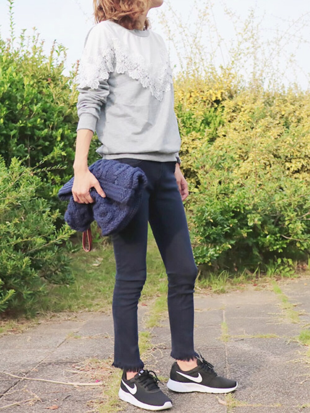 ご覧いただきありがとうございます🙇♀️✨ 今日も雨なのでいつかのコーデを💁 今日販売されたレースデザインカットソーが主役の極シンプルコーデです⭐️ トップスの切り替え部分にフラワーモチーフのレースが施されて、カジュアルの中に女性らしさをプラスしたアイテムです❣️ 最近ナイキのスニーカーを購入したのですが軽くて歩きやすくてもぅ病み付きです🙈💓 今日は新作販売日ですのでよかったらサイトをチェックしてみてください☺️🙏