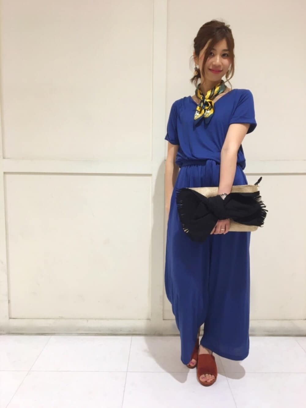 気を張らずにお洒落を楽しみたい 1枚で完成する上品なリラックススタイル 小物やアウターで印象を変えるのも◎ ⋱⋰ ⋱⋰ ⋱⋰ ⋱⋰ ⋱⋰ ⋱⋰ ⋱⋰ ⋱⋰ ⋱⋰ ✵TOPS✵ 68176HG0000 m ロールアップ5分袖カットコンビネゾン/Blue ✵BAG✵ 65172J50230 2WAYリボンクラッチショルダー/Black