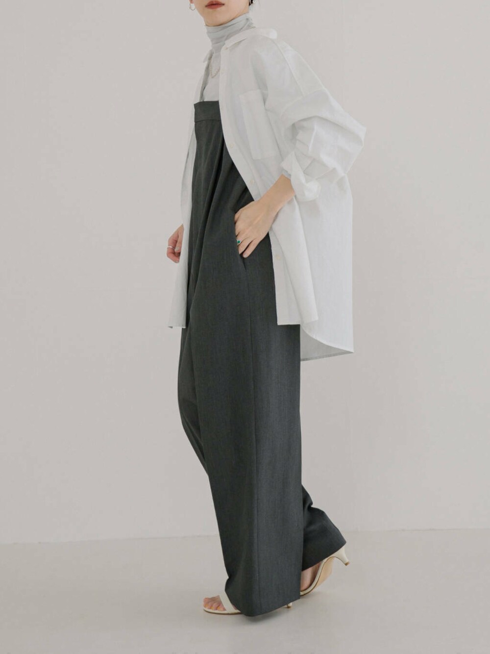 程よい厚みと柔らかさのあるコットン100%のカジュアルなオックス素材を使用したオーバーシャツ。 ゆったりとしたサイズ感で、衿を抜いて着用いただくとたっぷりとしたボリュームが女性らしい抜け感を演出。 一枚ではもちろん、ハイネックカットソーなどとのレイヤードや前開きのデザインが羽織りとしても楽しめる一着。 合わせるアイテムやインナー次第でロングシーズン活躍するアイテムです。 和紙混の程良く張りのある上質な素材を使用したオールインワンを、トレンドのベアトップデザインでご用意。 両脇をゴム仕様にすることでフィット感はありながらも締め付けのない着心地で、フロント開閉のジップデザインが着脱もスムーズにしていただけます。 身体のラインを拾わないIラインシルエットがスッキリとした印象で、合わせるインナーや小物によってガラッと雰囲気が変えられるため、シーンを問わず活躍します。