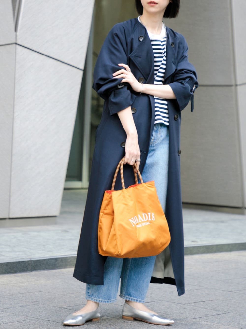 mackey(URBAN RESEARCH)のトレンチコート「ノーカラーロングトレンチコート」を使ったコーディネート