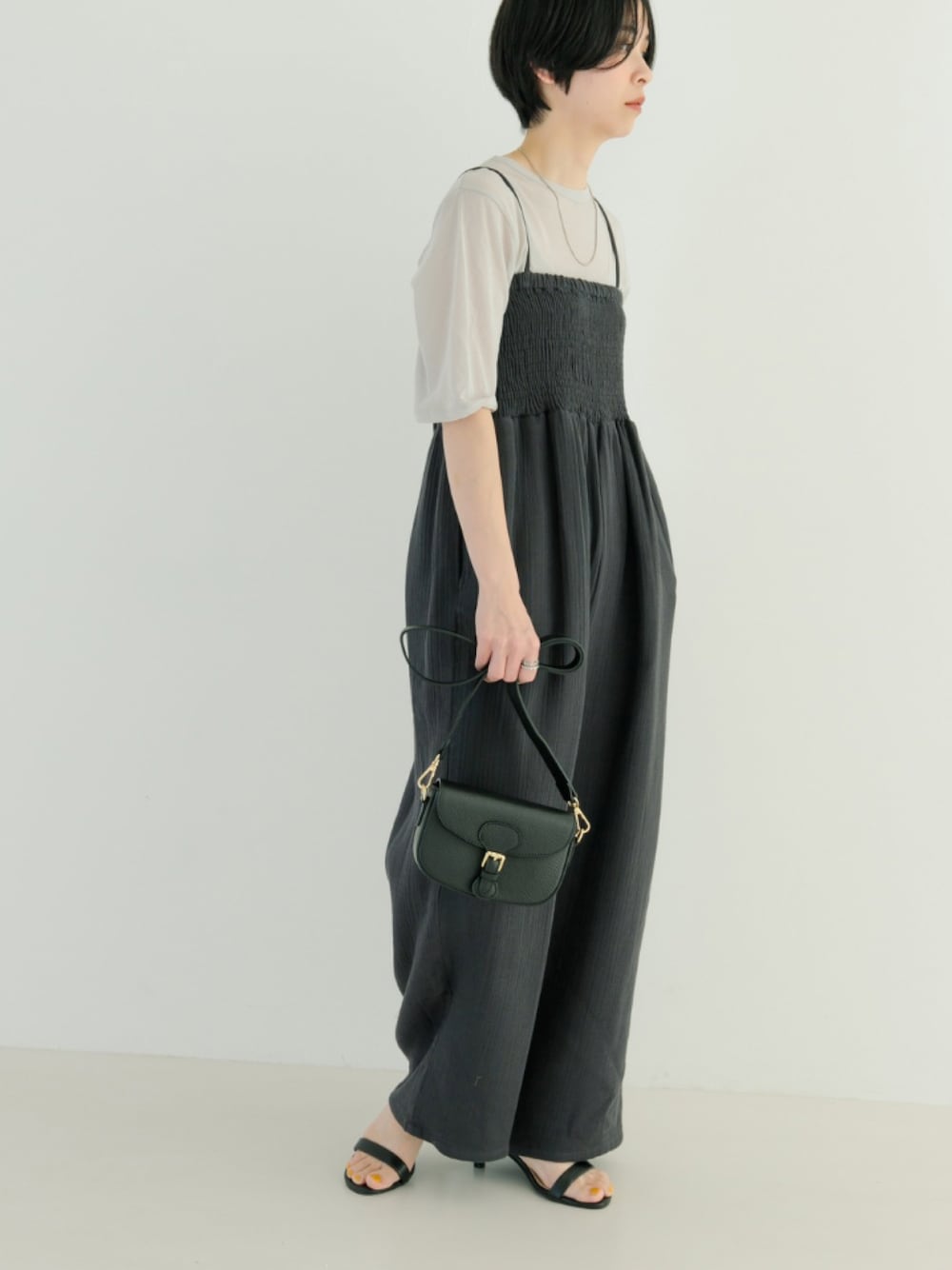 柔らかく落ち感のあるガーゼ天竺素材を使用したシアーTシャツは、ドライタッチな肌触りが魅力。 程良くゆとりのあるサイズ感がリラックスした着心地で、長さのあるハーフスリーブが気になる二の腕周りもしっかりとカバー。 シンプルなデザインやベーシックカラーが着回しやすく、肌の露出感を抑えたヘルシーな透け感が、華奢なインナー合わせでも着ていただきやすいアイテムです。 インド製の膨らみのあるガーゼ素材を使用したオールインワンを、トレンドのベアトップデザインでご用意。 ベアトップ部分はシャーリングのゴム仕様にすることで、フィット感はありながらも締め付けがなく、パンツ部分は身体のラインを拾わないゆったりとしたサイズ感がリラックスした着心地。 肩紐は長さの調節が可能で、一枚ではもちろん、合わせるインナーや小物によってガラッと雰囲気が変えられるため、シーンを問わず活躍します。