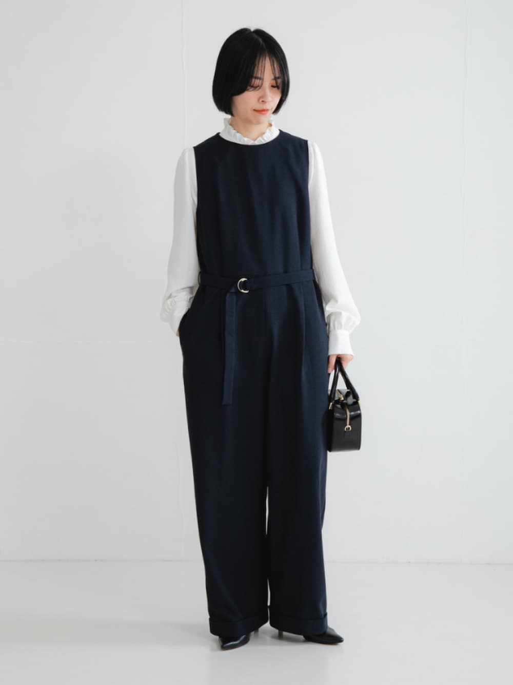 華やかなフリル襟が目を引く、ドビーストライプブラウス。 表面に織り柄が見えるドビーストライプ素材を使用した、華やかなブラウスです。 柔らかく肌触りが良く、シワになりにくい素材なので、お手入れも簡単。さらにご自宅での手洗いも可能で、デイリーに気兼ねなく使えます。 顔周りを華やかに見せるフリルカラーがデザインのポイントです。 ジャケットのインナーとしてもアクセントになり、着こなしを格上げしてくれます。肩にのるようなパフスリーブが、女性らしいフェミニンさを添えます。 ジレやジャケットの中に合わせて、オケージョンシーンやオフィスカジュアルシーンにおすすめ。シンプルなボトムスと合わせるだけで、一枚で主役になるアイテムです。 オンスタイルにも映える、美シルエットオールインワン。 ウールのような上品な風合いを持つ、ドライタッチな素材で仕立てたオールインワンです。 ナチュラルなストレッチ感があり、シワになりにくいのが魅力。 ご自宅での手洗いも可能なので、デイリーに気兼ねなく使えます。 フロントタックとクルーネックデザインがすっきりと洗練された印象を与えます。 身体のラインを拾わず、縦のラインをきれいに見せてくれるデザインです。 ベルトでウエストをマークすれば、メリハリのある女性らしいシルエットに。 ノースリーブで着るのはもちろん、ブラウスをインナーにしたり、お手持ちのカーディガンを羽織ってデイリー使いにと、幅広い着こなしが楽しめます。 ツイードノーカラージャケットや同素材のノーカラージャケットを合わせれば、オケージョンスタイルにもおすすめです。