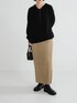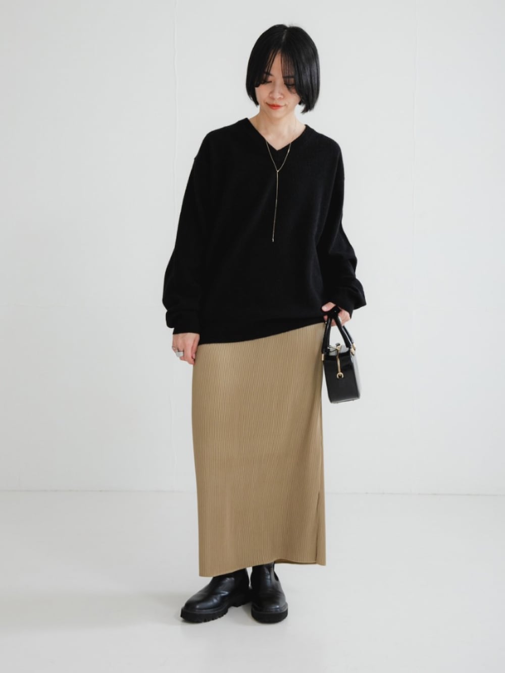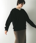 英国羊毛の上質さが際立つ、Vネックルーズニット 。 シンプルなデザインながらもこだわりのつまった、長く愛用できる一枚です。 ウール100%を使用した、軽くて温かいのが特徴。 程よくゆとりのあるルーズなシルエットで、体型を気にせずリラックスして着られます。 襟元は開きすぎていないので、インナーを気にせず一枚で着られるのが嬉しいポイント。 Vネックが首元をすっきりと見せてくれます。 Tシャツを重ねたレイヤードスタイルもおすすめです。 裾はリブ仕様で、腰で止めることで着丈の調節が可能。小柄な方でもバランス良く着こなせます。