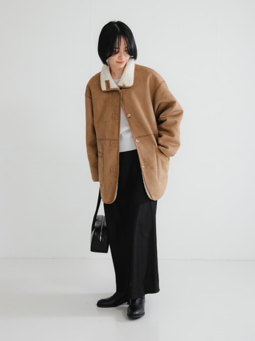 mackey(URBAN RESEARCH)のムートンコート「ECOPELフェイクムートンリバーシブルコート」を使ったコーディネート