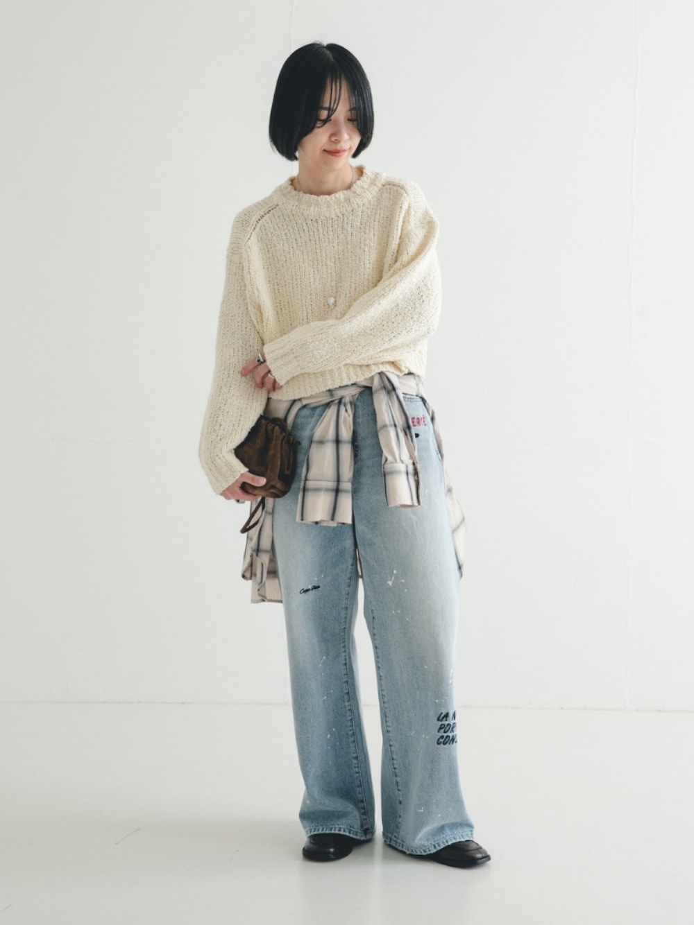 表情豊かな表面感とバランスが魅力。バルキーブークレクルーネックニット。 バルキーなウールアクリルとコットンブークレをかけ合わせた、温かみと表情豊かな表面感が魅力のクルーネックニットです。 コンパクトな丈感とボリュームのある袖が、トレンド感のあるバランスを生み出し、女性らしさを引き立てます。着丈がコンパクトなので、ボリュームのあるワイドパンツやフレアスカートと合わせても、すっきりとメリハリのある着こなしが楽しめます。 また、インナーにシャツやTシャツを合わせて、裾から覗かせたレイヤードスタイルもおすすめです。 美シルエットと刺繍にこだわった、UR完全別注のスペシャルデニムパンツ。 形からデザイン、刺繍までURが完全に別注したスペシャルな一本です。 オリジナルで描き起こした手書き風の刺繍を贅沢に散りばめました。細部に宿る遊び心やニュアンスまでこだわったデザインが魅力です。 ワイドすぎず、美しくすとんと落ちるゆとりのあるワイドストレートシルエット。 脚のラインを拾わず、リラックスした穿き心地でありながら、スタイルアップも叶えます。 一枚で主役級の存在感を放ちながらも、日常のスタイリングに取り入れやすい万能なバランスです。同シリーズのデニム刺繍シャツとセットアップで着れば、特別なスタイルが完成します。スウェットやニットでカジュアルにまとめたり、トレンチコートを羽織ったり、インナーにレーストップスを合わせるなど、様々な着こなしを楽しめます。